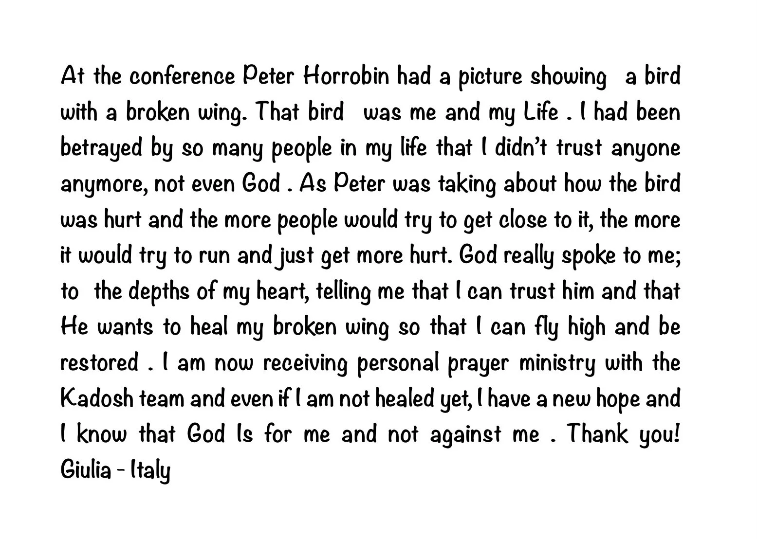“Our ministry time at Kadosh has restored our marriage. We felt safe and loved!”
